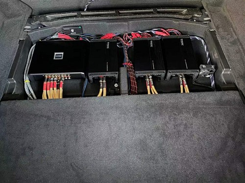 奔馳AMG GT50車主對(duì)音質(zhì)有著狂熱的發(fā)燒追求,原車搭配11只喇叭,在泉州海林我們給車主無損升級(jí)了14只勁浪專車專用喇叭,并用三臺(tái)四路功放驅(qū)動(dòng),高音細(xì)膩柔和,不刺耳,中音層次清晰,人聲細(xì)節(jié)更豐富,低頻強(qiáng)勁,結(jié)實(shí)有力。中置、后環(huán)繞喇叭補(bǔ)充聲場(chǎng),打造超強(qiáng)的立體環(huán)繞聽音氛圍。再添加一只超低音,帶來強(qiáng)勁動(dòng)感的低音,讓音樂的氛圍濃厚、感染力更強(qiáng)。