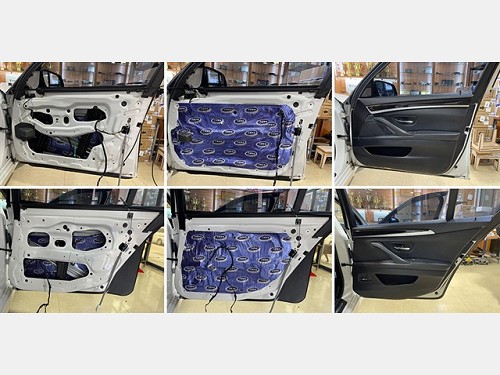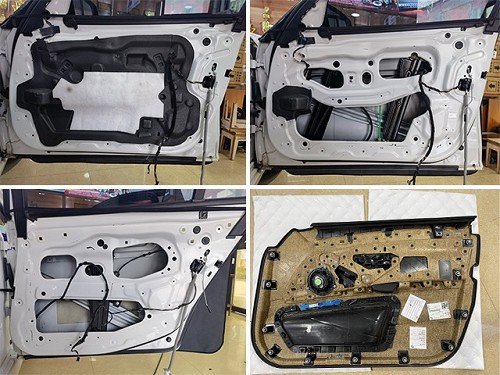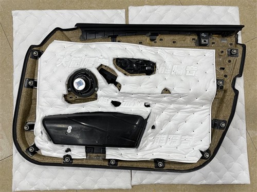 寶馬5系原車門板鐵皮結(jié)構(gòu)單薄,內(nèi)部空洞結(jié)構(gòu)也很多,風(fēng)噪很容易通過門板傳入到車廂內(nèi)部,因此改裝技師使用大能藍金剛+吸音棉,對門板做了三層的隔音處理,這既減少了風(fēng)噪的傳入,同時也減少了門板自身產(chǎn)生的噪聲。