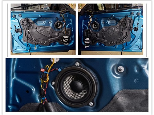 拆開門板飾蓋,可以看到原車中低音做工藝一般