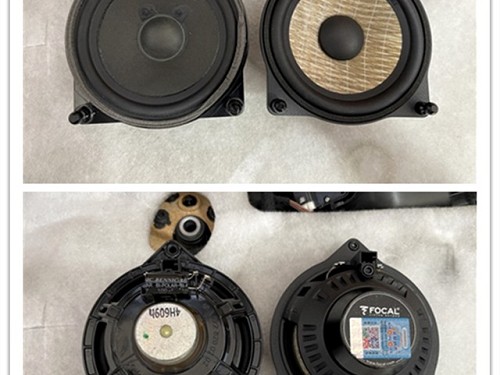 將原車?yán)群蜕壍姆▏鴦爬死认啾容^,可以看出原車?yán)仁褂玫牟馁|(zhì)一般,盆面單薄。再看升級使用的法國勁浪專車專用喇叭,背面采用高性能釹鐵硼磁鐵和鋁質(zhì)音圈,可將音效提升至前所未有的水平。
