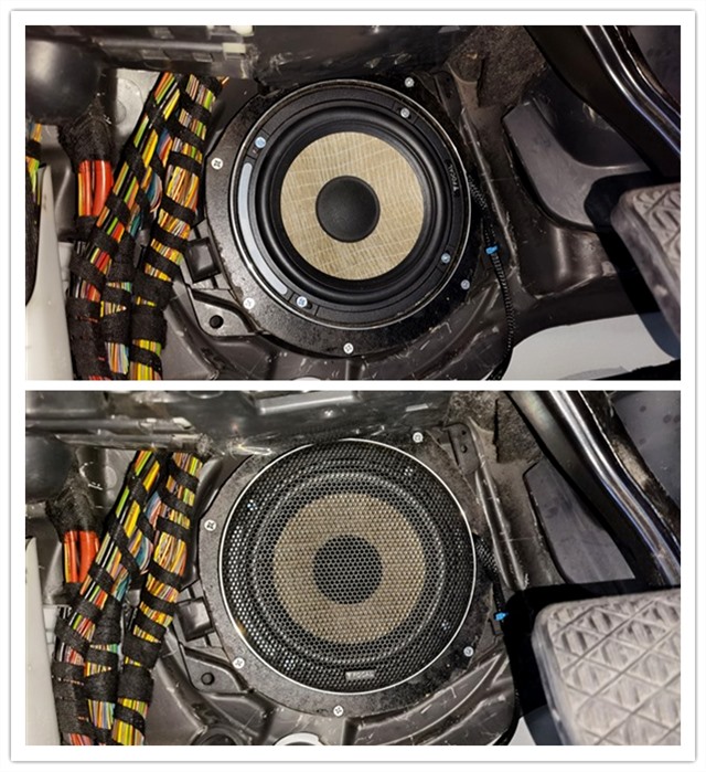 如圖可見,拆下來的原車?yán)茸龉ご植谇彝倒p料。為此,改裝師選用法國勁浪專車專用喇叭來做音響升級,是根據(jù)奔馳原車結(jié)構(gòu)特點進(jìn)行設(shè)計,所有喇叭原位安裝,不破壞內(nèi)飾,不影響線路。滿足車主既想提升音質(zhì),又不想破壞原車內(nèi)飾的兩大要求。