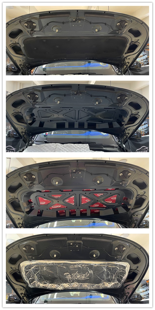 使用大能紅派對引擎蓋做第一層隔音,銀衛(wèi)士做第二層隔音