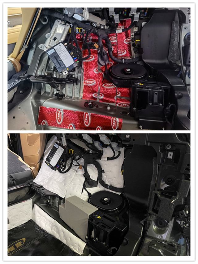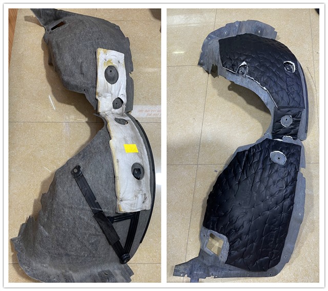 在不同路段,噪音也相應(yīng)不同。特別是在跑砂石路時(shí),輪胎帶起的石子打在車的內(nèi)襯板上的噪音很大,根據(jù)前后輪的結(jié)構(gòu)特性,使用大能隔音材料對前后輪進(jìn)行止震隔音可以充分有效解決胎噪、路噪問題。