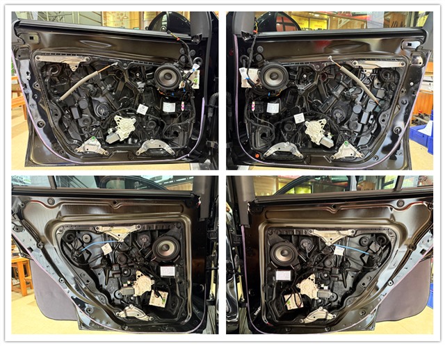 原車只有五個揚(yáng)聲器,而且連兩個高音單元都沒有。喇叭的分布情況——前門板有兩個中音,右腳踏板有一個中低音(左腳踏板的喇叭位是空的),后門板有兩個中音。