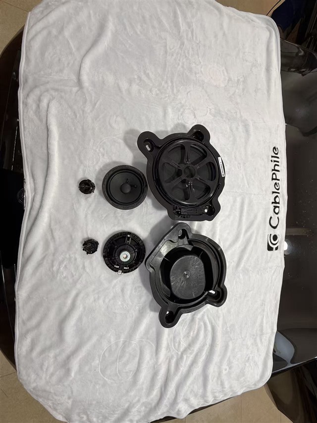 這款奔馳E300的音響配置極為“縮水”,前門板僅配備一對中音喇叭,副駕駛位置僅有一只低音喇叭,而主駕駛腳踏處的低音位置更是僅有一個空殼,內(nèi)部并無實質(zhì)性音響單元。更令人詬病的是,原車喇叭用料粗糙,材質(zhì)廉價,這正是其音質(zhì)拉胯的核心原因,也為音響升級預(yù)留了充足空間。