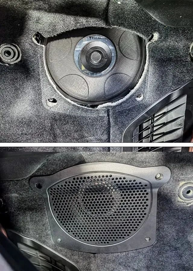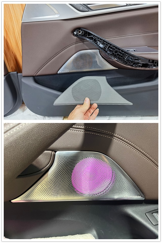 原車后門板其實(shí)是沒(méi)有喇叭位的,但考慮到后排乘客的聽(tīng)音享受,改裝師利用專業(yè)改裝經(jīng)驗(yàn),采取挖洞的方式做出標(biāo)準(zhǔn)的喇叭位,依舊是選擇安裝勁浪IS BMW 100L二分頻套裝對(duì)前聲場(chǎng)進(jìn)行輔助。并且升級(jí)一套勁浪IS BMW 100 二分頻喇叭做后環(huán)繞,實(shí)現(xiàn)整個(gè)車廂有立體環(huán)繞感的聽(tīng)音享受!