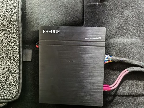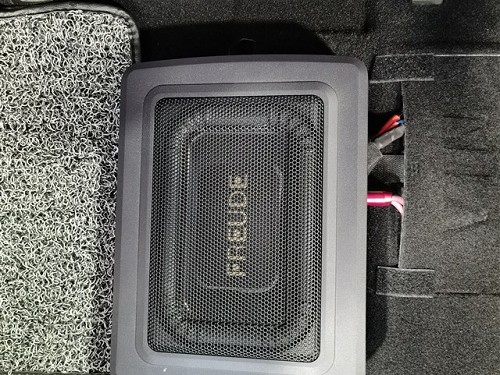 一只弗萊德超薄低音和一臺弗萊德FP-6A V2功放分別隱藏安裝在座位底下