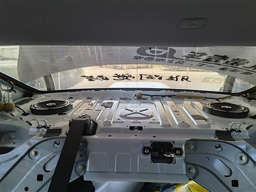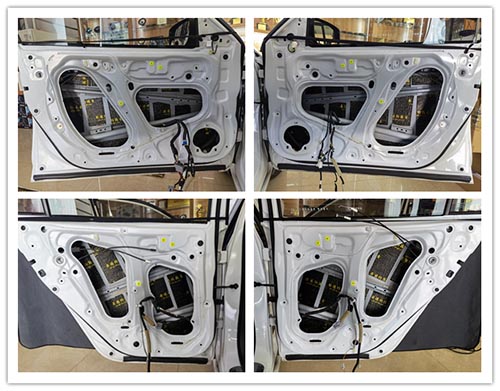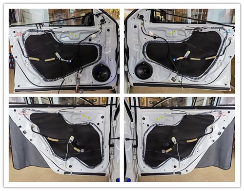 接下來就是中低音的安裝,大家都知道四門隔音可以提升喇叭音質(zhì),所以為了給汽車的聲場喇叭創(chuàng)造一個(gè)良好的工作環(huán)境,改裝師使用安德納隔音材料對汽車的門板做了雙層的隔音處理,這就讓門板形成了一個(gè)密封的箱體,既可以減少風(fēng)噪等噪聲的干擾,同時(shí)也能夠在一定程度上增強(qiáng)音樂的立體感。不管是否更換喇叭,四門隔音同樣受用。