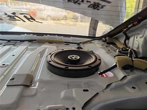 門板第二層隔音,密閉多余孔位,有效減少風(fēng)噪的傳入 ,在隔音結(jié)束后原位無損安裝了勁浪165A-GL中低音喇叭