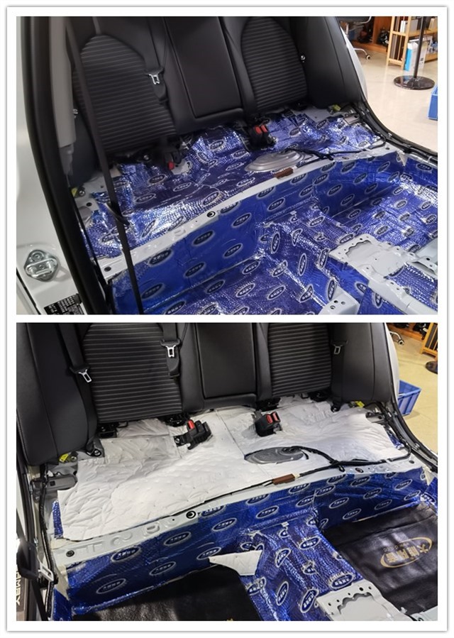 低頻噪音、發(fā)動(dòng)機(jī)噪音、輪胎噪音通過底盤表現(xiàn)出來具有很強(qiáng)的穿透性,是汽車噪音最主要的表現(xiàn)形式,也是影響汽車駕駛舒適性的主要原因。所以改裝師在底盤貼上大能藍(lán)金剛和噪音終結(jié)者,重點(diǎn)解決發(fā)動(dòng)機(jī)噪音和路噪,有效抑制共振,降低大量的發(fā)動(dòng)機(jī)和排氣管熱量向駕駛室傳導(dǎo)。