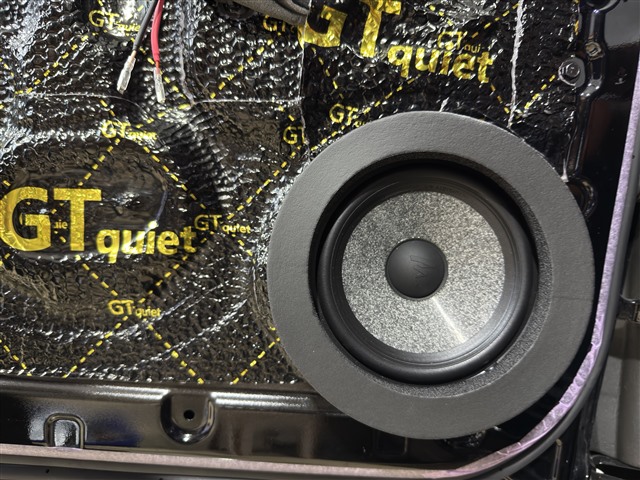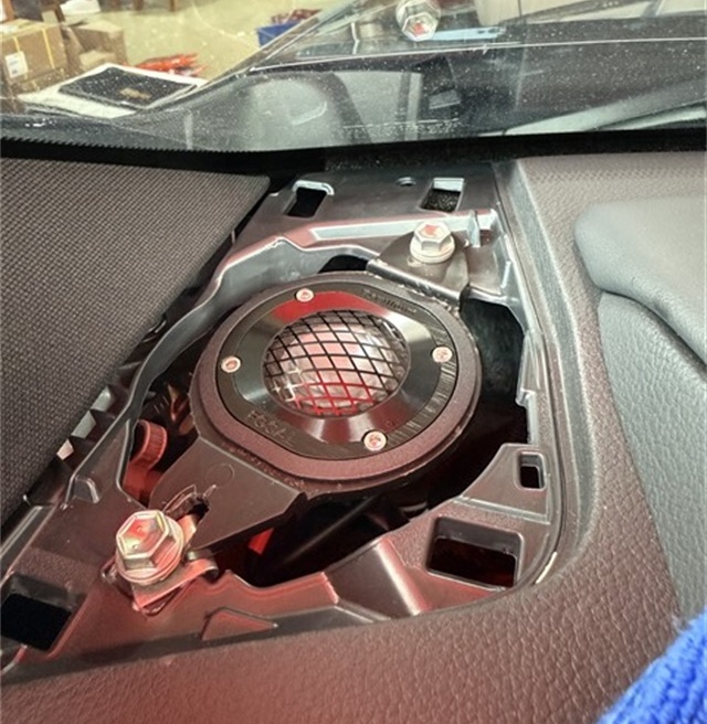 在前聲場部分,我們?yōu)檐囍鬟x用了法國勁浪165W-XP“小烏托邦”兩分頻。這款喇叭源自勁浪高端Utopia系列的設(shè)計理念,做工考究、音色純凈,能真實還原音樂中的細膩情感與動態(tài)變化。高音安裝于儀表臺兩側(cè),中低音則牢固安裝在前門板原位。