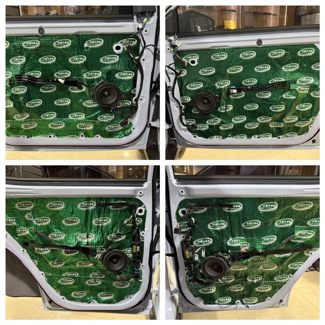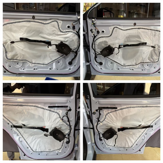 在與車主深入溝通后,泉州海林團(tuán)隊結(jié)合車型聲學(xué)特性與車主聽音偏好,敲定了一套精準(zhǔn)高效的升級方案。核心配置上,前后聲場均選用勁浪專為寶馬車型優(yōu)化的喇叭套裝——前門勁浪IS BMW 100L兩分頻,搭配弗萊德FP-6A處理器實現(xiàn)精準(zhǔn)調(diào)校,再以弗萊德FED-800 8寸超薄低音彌補(bǔ)低頻短板,配合大能超級盾隔音工藝,從源頭提升音響表現(xiàn)。施工環(huán)節(jié),門板內(nèi)部僅覆蓋一層薄塑膠紙,毫無隔音效果,這也是原車音質(zhì)渾濁的重要原因。針對這一問題,技師先將門板清潔打磨,隨后貼上大能超級盾隔音材料,通過雙層密封處理,有效阻隔外界噪音,同時為喇叭創(chuàng)造穩(wěn)定的發(fā)聲環(huán)境。
