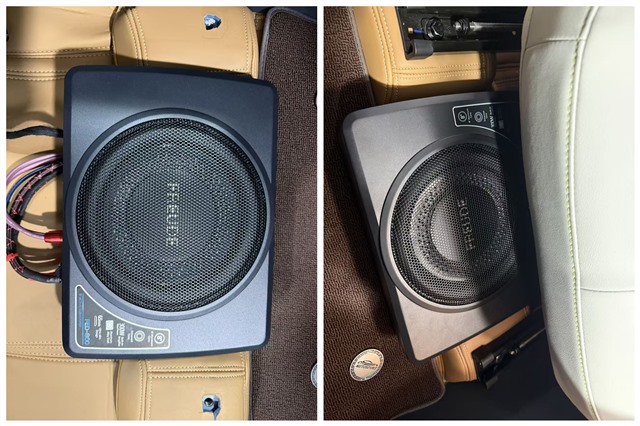弗萊德FP-6A處理器與FED-800超薄低音被巧妙安置在座椅下方,既不占用車內(nèi)儲物空間,又能讓處理器近距離驅(qū)動喇叭,減少信號損耗。特別是8寸超薄低音,以小巧體積釋放出飽滿緊實的低頻,讓音樂更具感染力。