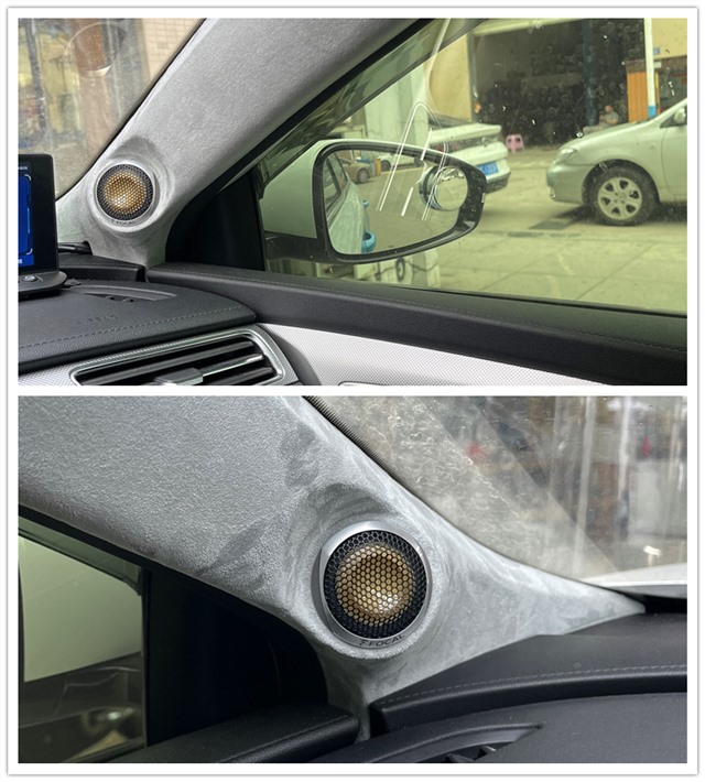 原車門板未經(jīng)過隔音處理,因此導(dǎo)致各種外界噪聲和車門鈑金的共振聲被傳入車廂內(nèi)部,影響了音響效果,讓喇叭的聲音變得不夠清晰不夠流暢。為了解決這個(gè)問題,我們的改裝師采用了高品質(zhì)的安德納環(huán)保隔音材料對四門采取了專業(yè)隔音處理,有效地減少了噪音和振動(dòng),為喇叭發(fā)揮打下了堅(jiān)實(shí)的基礎(chǔ)。