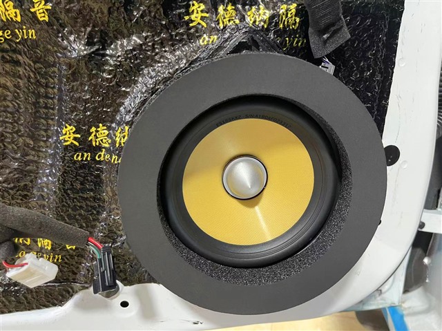 勁浪黃盆KX2中低音喇叭無損安裝在前門板,安裝時(shí)還加裝了美音圈,能填充原車內(nèi)飾板和喇叭間的間隙,讓聲音集中向車內(nèi)傳出,而不會(huì)四周發(fā)散。