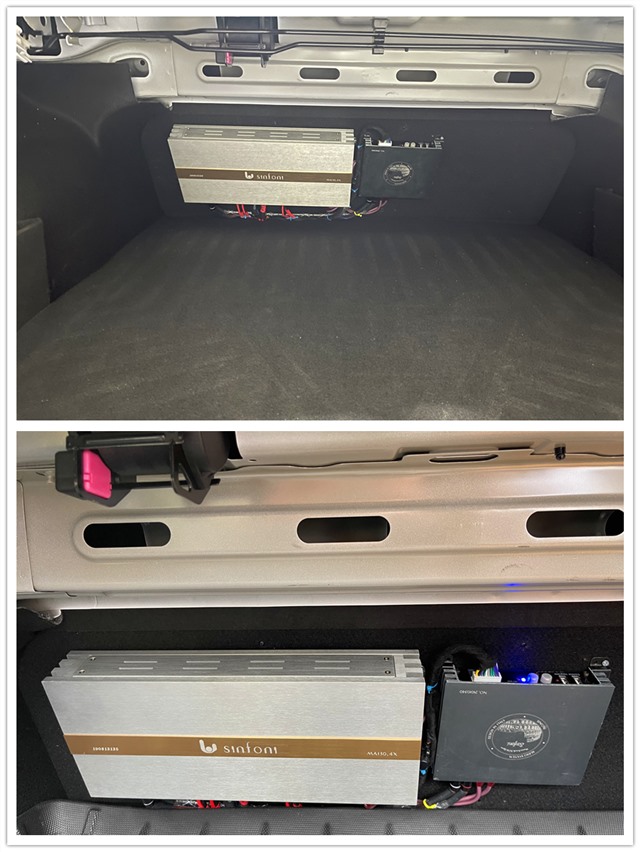 詩芬尼MA130.4功放和詩芬尼BO6.0pro音源處理器引線安裝在尾箱側(cè)面,完全不會(huì)占用置物空間