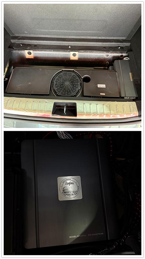 這次升級方案選擇了專車專用的線束,確保與原車音響系統(tǒng)無縫對接,減少改裝過程中的繁瑣接線工作和電路問題。同時,我們加裝了一臺詩芬尼BO32pro 16路DSP功放及一臺詩芬尼BO810 8路功放。這兩臺功放不僅可以強力驅(qū)動原車的揚聲器,還能通過DSP的強大處理能力對音效進行精確調(diào)校,提升音質(zhì)的層次感和細節(jié)表現(xiàn)。