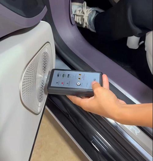 為了保證每個揚聲器的發(fā)聲一致性,我們使用了專門的相位測試儀來測量揚聲器的相位情況。相位不對會導(dǎo)致聲音失真或聽感不自然,而經(jīng)過專業(yè)的相位調(diào)整后,車內(nèi)音響的表現(xiàn)變得更加精準,音效也更加立體真實。