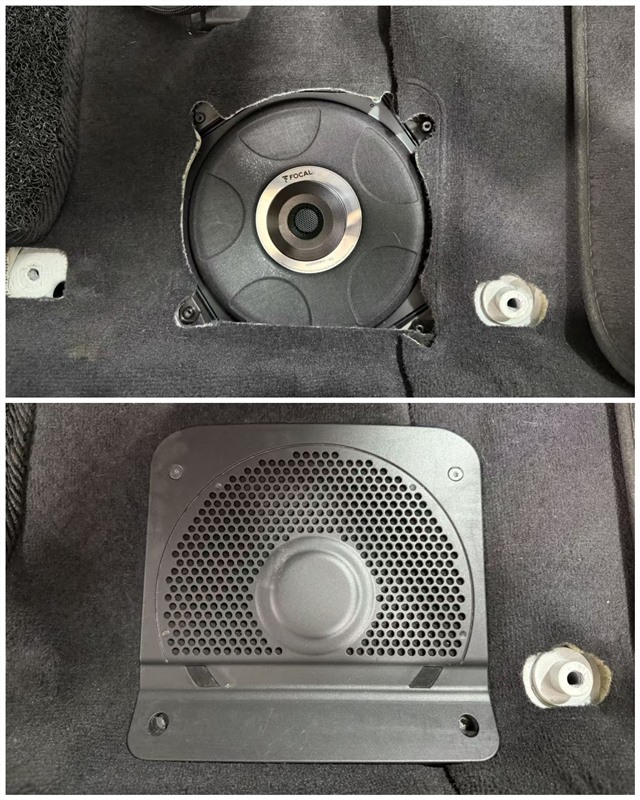喇叭均采用原裝位安裝,真正做到無損改裝。勁浪ISUB BMW 4中低音單元精準(zhǔn)安裝在腳踏板旁,并加裝專用保護罩,避免腳部磕碰。