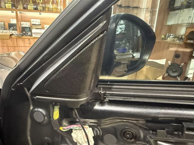 勁浪ASE-165高音單位安裝在原車門板三角區(qū)