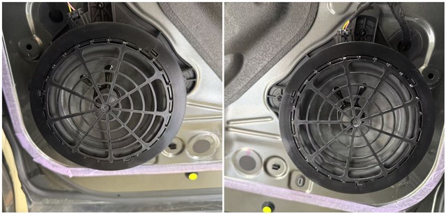 拆下的原車?yán)炔馁|(zhì)普通,盆架設(shè)計(jì)簡(jiǎn)單,磁體較小,注定其聲音表現(xiàn)力有限。升級(jí)后的勁浪喇叭,不僅材質(zhì)和做工有天壤之別,我們還為喇叭加裝了美音圈,能有效防止聲音在門板內(nèi)散射,讓聲音更集中、清晰地傳入車廂,提升中低頻的力度與純凈度。