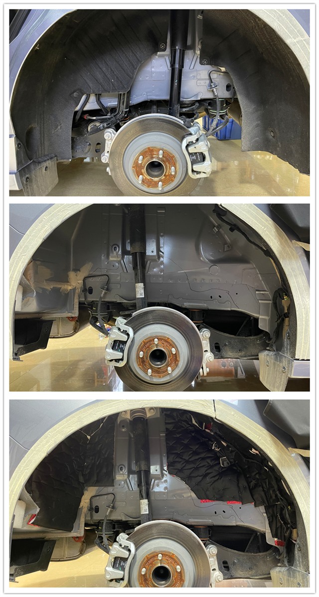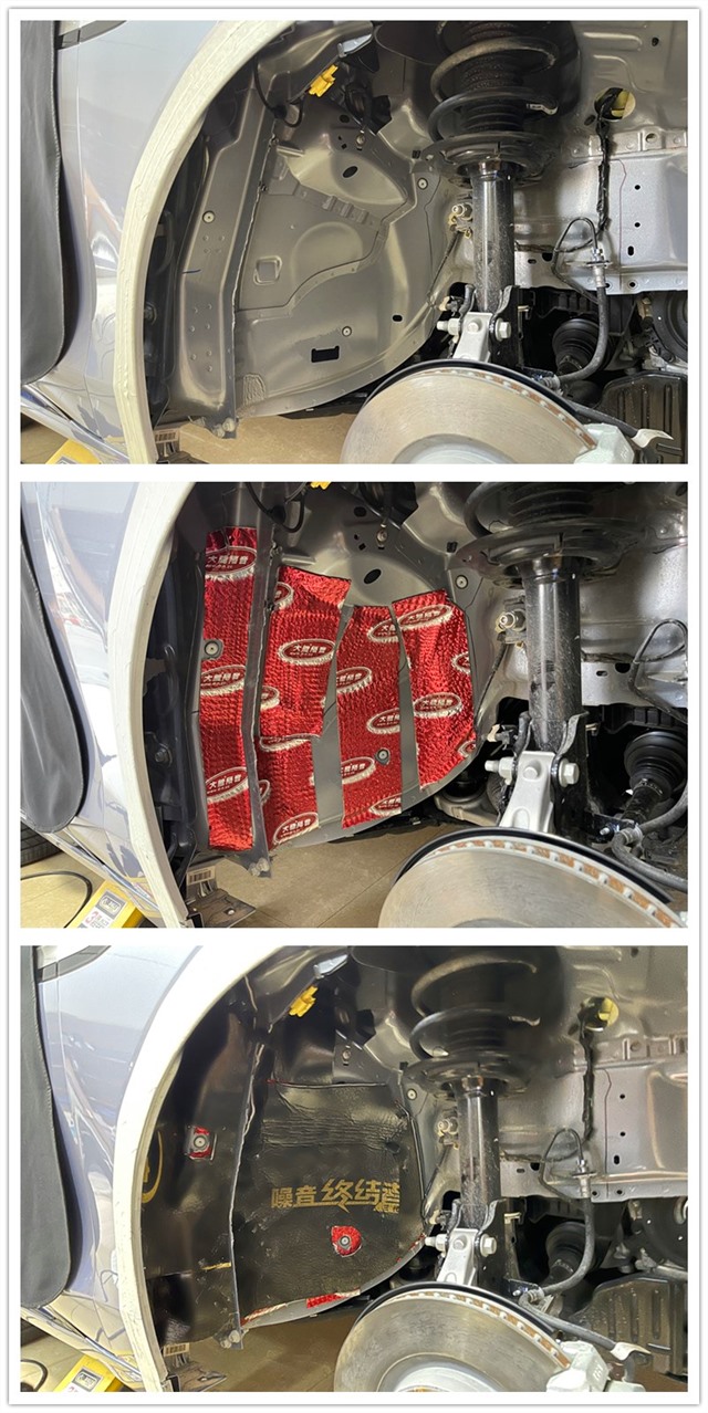 拆下來(lái)的葉子板使用大能隔音材料進(jìn)行吸音隔熱處理,吸收車(chē)輛輪胎產(chǎn)生的噪音,阻擋聲音傳遞到車(chē)廂內(nèi)。