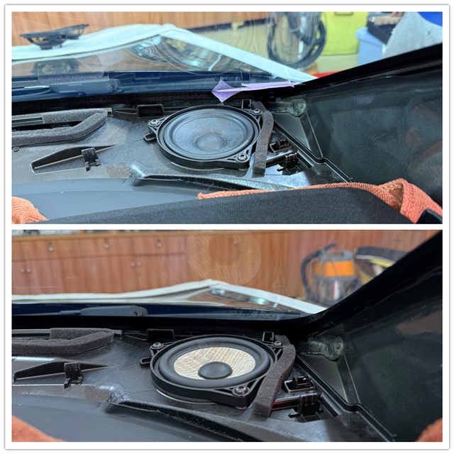 勁浪ICC T3Y 100中音(下)替換原車喇叭(上)無損安裝在中置位