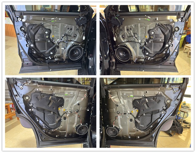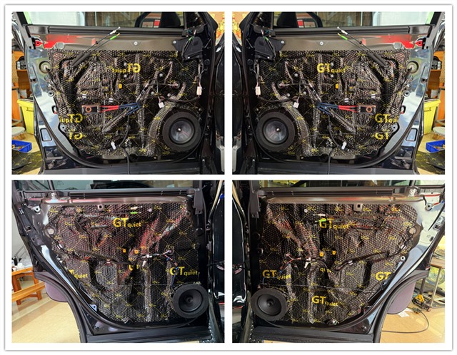 眾所周知,門板不僅是喇叭的安裝位置,也是影響音質(zhì)的關鍵因素。原車門板隔音較為薄弱,在行駛過程中容易受到風噪和路噪的干擾,導致音樂細節(jié)被掩蓋,甚至出現(xiàn)共振影響聽感。此次改裝采用GT隔音材料,對四門進行雙層隔音處理。