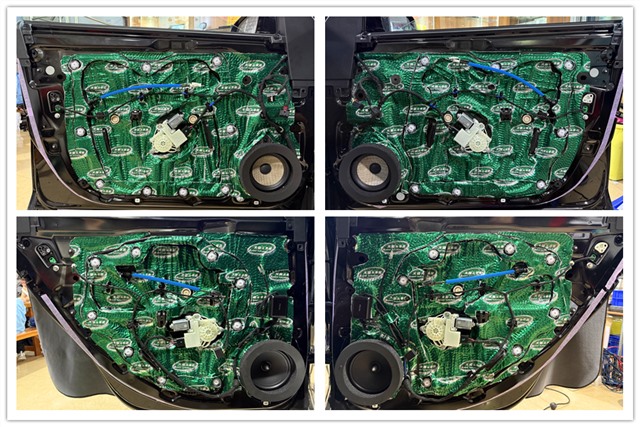 前后門板使用大能超級盾進行專業(yè)隔音后,原位無損安裝中低音喇叭