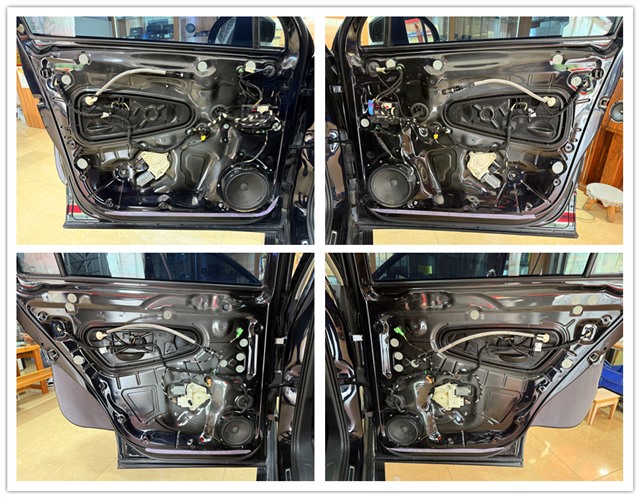 原車前后門板并沒(méi)有做好隔音措施,改裝師先將門板鈑金表面進(jìn)行清潔,即將進(jìn)行隔音施工