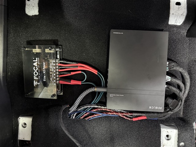 在音響器材的選擇上,這位車主的眼光可以說是非常到位的:喇叭升級(jí)為法國勁浪黃盆KX2兩分頻,這套喇叭無論在解析力、聲音的通透度還是動(dòng)態(tài)表現(xiàn)上都極為出色。高音安裝在門板三角位,聲場定位更準(zhǔn)確。中低音喇叭則無損安裝在原位,既保證了音效,也不影響原車外觀。
