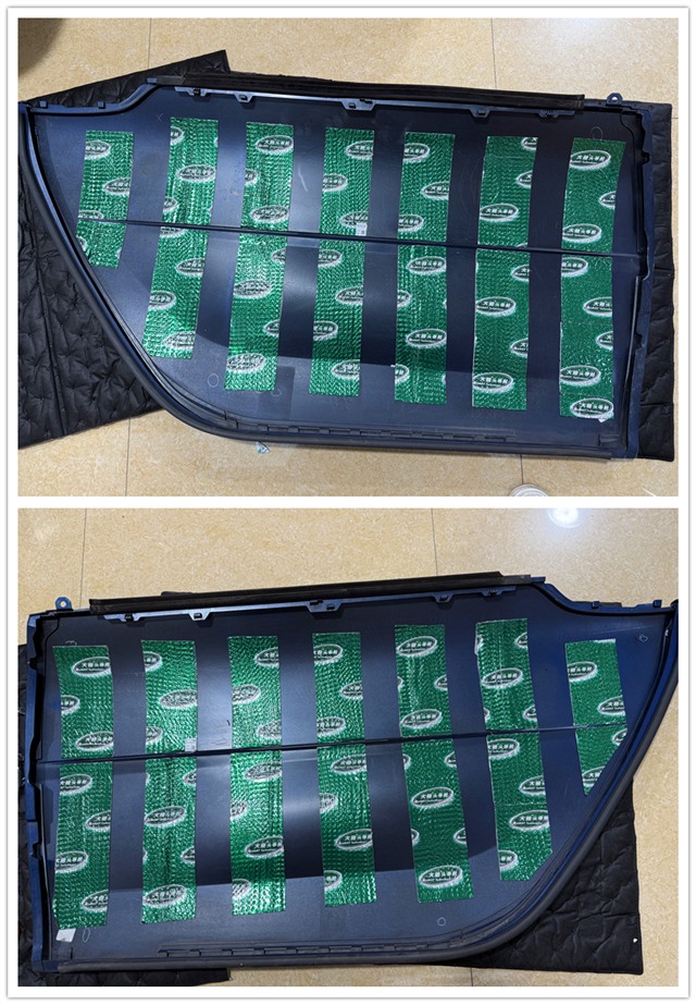 門板飾蓋使用大能超級(jí)盾進(jìn)行條狀粘貼隔音