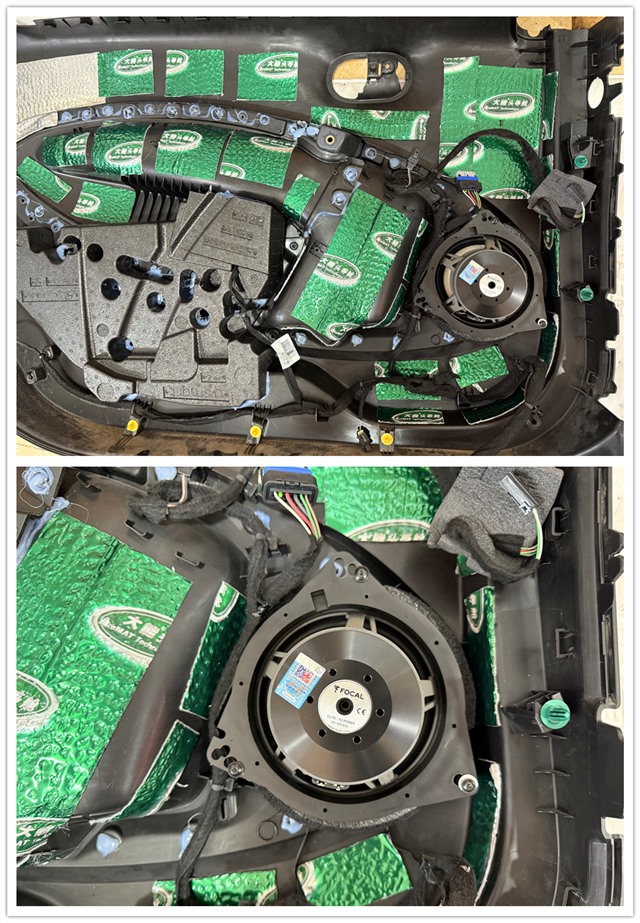 門板使用大能超級(jí)盾進(jìn)行條狀粘貼隔音,并且無損安裝勁浪黃盆KX2中低音喇叭