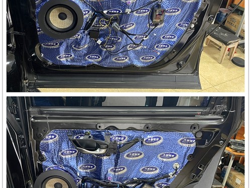 改裝師使用了大能藍(lán)金剛對四門進(jìn)行專業(yè)隔音處理。這不僅增強(qiáng)了隔音效果,還為原位無損安裝在前后門板的勁浪亞麻中低音創(chuàng)造了更佳的工作環(huán)境!