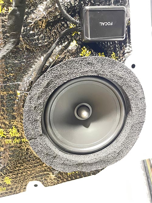 前后門板使用安德納進(jìn)行專業(yè)隔音后安裝勁浪ASE-165中低音喇叭