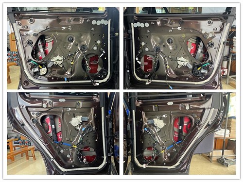 前后門板分別運用兩層大能紅派進行隔音強化,貼合工藝嚴(yán)謹(jǐn),使得鈑金與隔音材料緊密相連,增強鈑金剛度并降低共振噪音