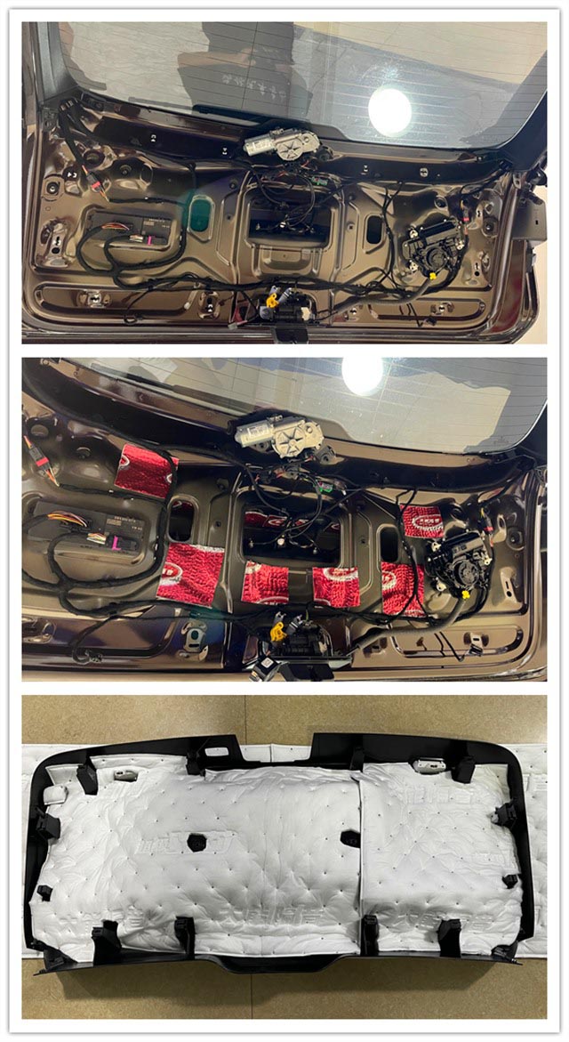 后備箱也是車內(nèi)噪音的主要來源,使用大能紅派及超級溫莎對尾門做雙層隔音處理,有效阻隔噪音傳入,使車身行駛時更加緊固