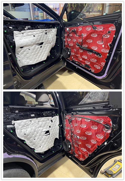 前后門板使用大能紅派進行隔音處理