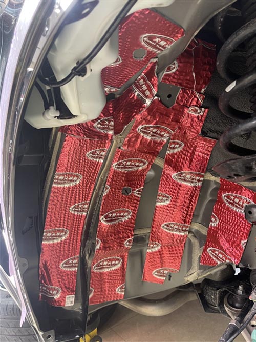 使用噪音終結(jié)者對輪弧做第二層隔音處理,能夠隔絕噪音的傳遞,將聲音的振動轉(zhuǎn)化為熱能散發(fā),對噪音的隔絕非常有效