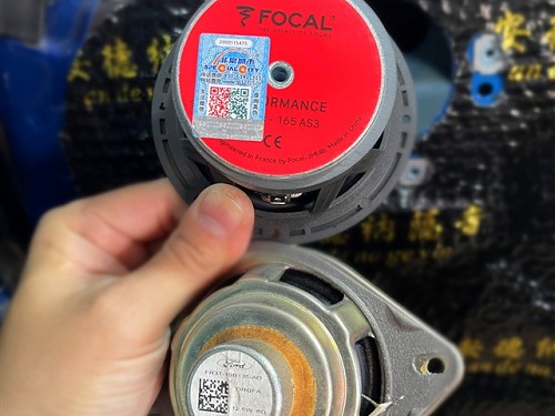 原車中音(上)與勁浪165AS3中音(下)的正面比較,原車中音使用普通紙制,簡單的喇叭結(jié)構(gòu);而勁浪165AS3中音采用鋁制倒圓頂、DFS振膜,聲音具有極高的解析力!
