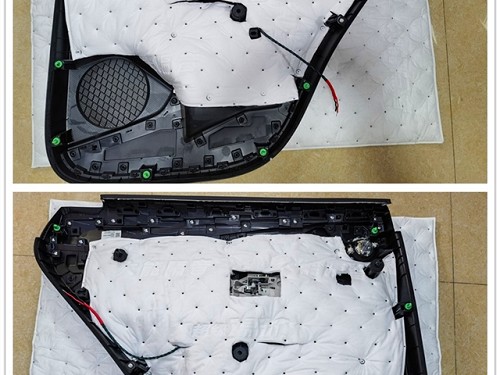 原車門板沒有進行隔音處理,于是先對門板進行專業(yè)清理即將開始隔音施工