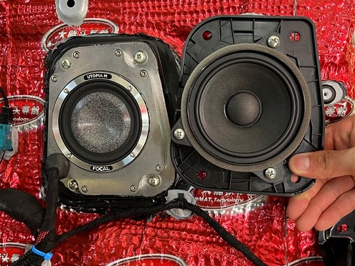 前后門(mén)板使用大能紅派進(jìn)行雙層隔音后,原位無(wú)損安裝喇叭