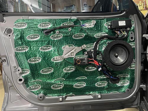 后門板同樣進(jìn)行了大能頭等艙隔音處理,以保證后聲場(chǎng)的音質(zhì)表現(xiàn)。在隔音完成后,將勁浪165A-GL兩分頻原位無損安裝在門板,使得后聲場(chǎng)的聲音表現(xiàn)更加飽滿、細(xì)膩,與前聲場(chǎng)形成了良好的呼應(yīng)。