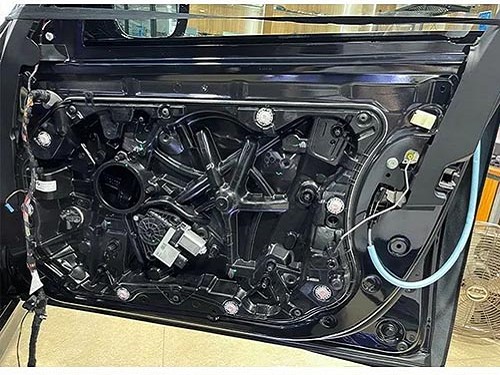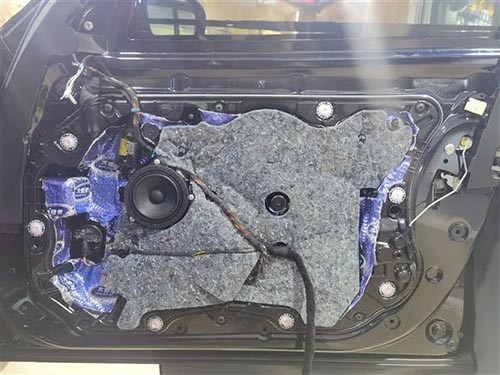 使用專業(yè)隔音材料對四門進(jìn)行隔音處理,讓整個車廂成為一個密封的箱體,提升喇叭的效果,也能提升車門鈑金厚度