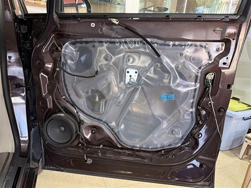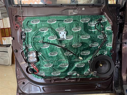 原車門板的隔音措施相對薄弱,導(dǎo)致行車中會產(chǎn)生較多噪音,影響音響的表現(xiàn)力。為解決這一問題,改裝師在前后門板內(nèi)外雙層使用了大能超級盾隔音材料,以更好地隔絕外部噪音和門板共振。