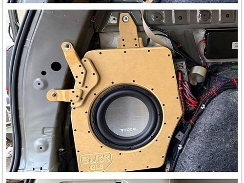 改裝師在尾箱側(cè)面制作一個專門的補型箱,并將勁浪SUB 25 A4超低音鑲嵌其中