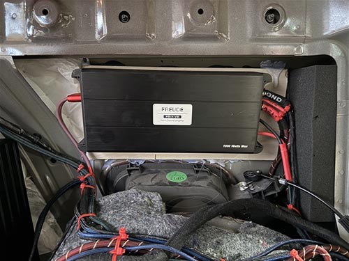 為了驅(qū)動勁浪喇叭的高性能,添加了弗萊德FS-4聲場功放,以提供更為充足的功率輸出,讓前后聲場的喇叭發(fā)揮最佳效果。同時,為了增強低頻的控制力,選用一臺弗萊德FD-1V2低音功放,并將其安裝在尾箱一角,保證了超低音的充沛動力輸出。