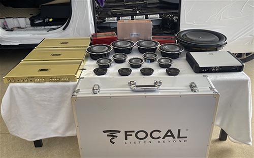 由于升級發(fā)燒級別器材較多,經(jīng)過考量與節(jié)省車內(nèi)的使用空間,改裝師決定做尾箱倒模工藝。將處理器、功放等器材隱藏式安裝。再為汽車添加一只美國捷力12W6 12寸超低音,一臺(tái)美國捷力1200.1單路功放配合推動(dòng),增加了低頻的下潛,為汽車帶來激情澎湃,強(qiáng)勁有力的震撼低音,讓音樂的氛圍感更強(qiáng),對氣氛的渲染力十足。升級使用的音響器材品質(zhì)出色,但是功耗也比較大,直接推動(dòng)會(huì)有很多的問題,因此改裝師為前后聲場喇叭,添加了三臺(tái)詩芬尼小黃金四路功放。而為了保證音頻信號(hào)的干凈完整,還在音源端為音響系統(tǒng)添加了一臺(tái)發(fā)燒友專用的高端專業(yè)歌航G2pro數(shù)播處理器,讓頻段銜接順滑自然,還原出更加逼真的舞臺(tái)效果!
