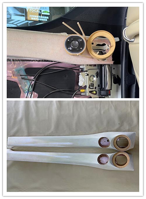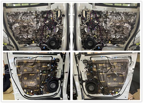 前后門板使用環(huán)保隔音材料進(jìn)行隔音后,在門板原位無損安裝中低音喇叭