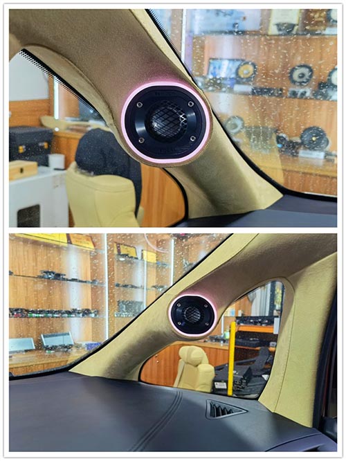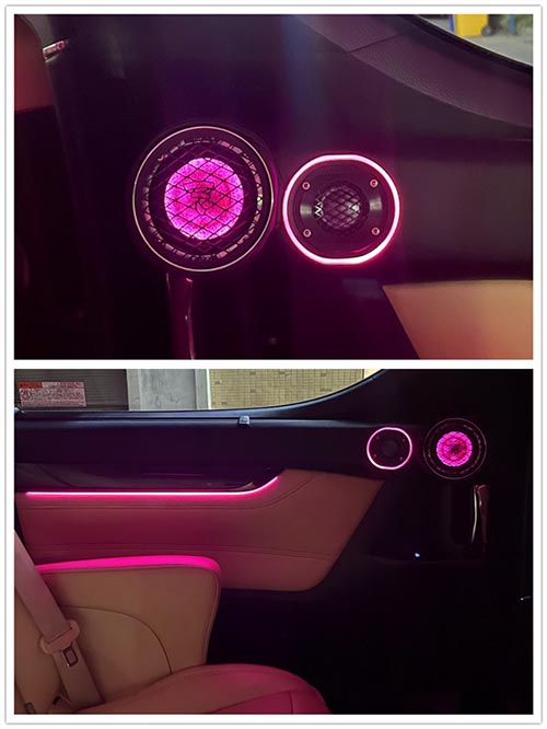 倒模安裝后的高音喇叭,加上氛圍燈整體比較美觀大氣